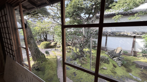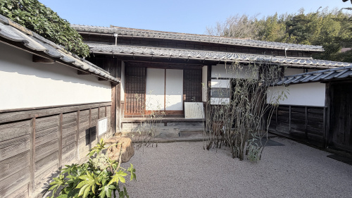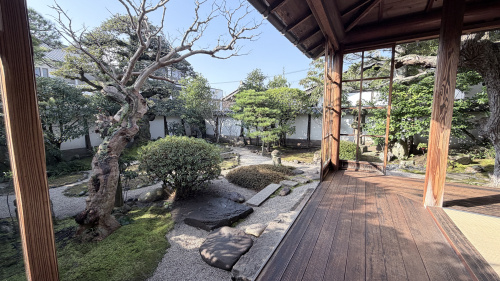 南と西の庭は敷砂の中に飛び石や石灯籠が配された枯山水庭園。